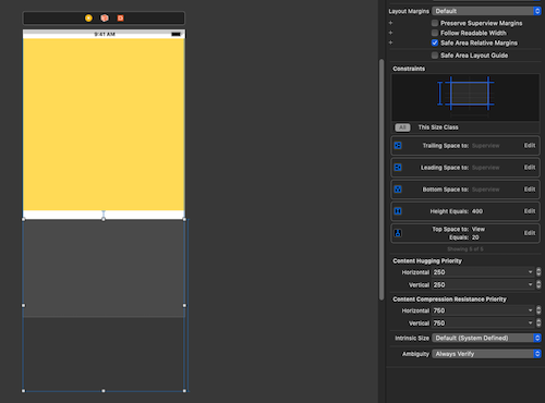 剩下就是利用自动布局往 contentView 中添加子视图, 需要注意在滚动方向上的最后一个子视图需要将其滚动方向上的边约束到内容视图上, 如下所示: